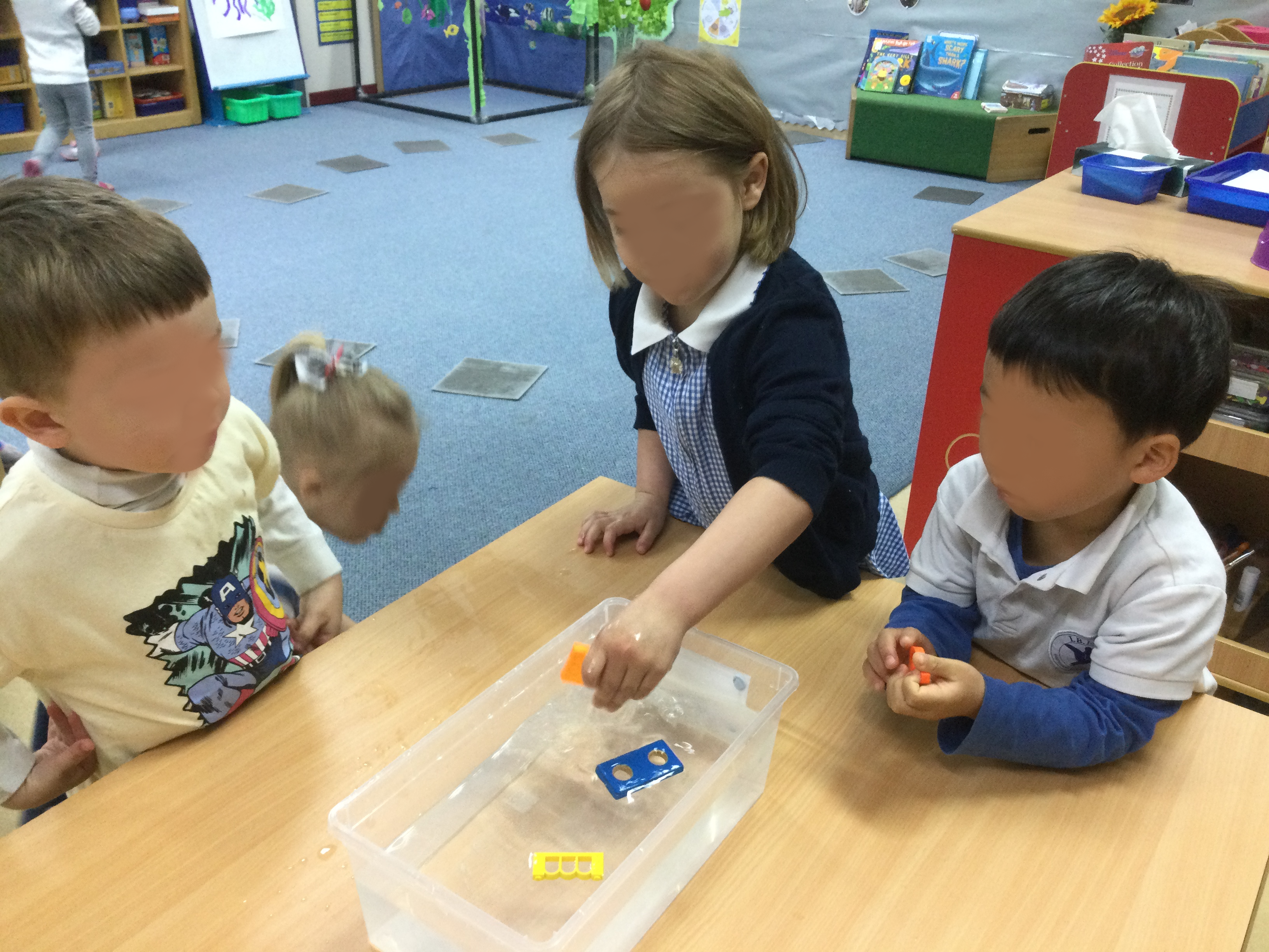 - Kindergarten were given a free reign to explore ‘sinking and floating’, in groups and self-led with objects in the classroom.